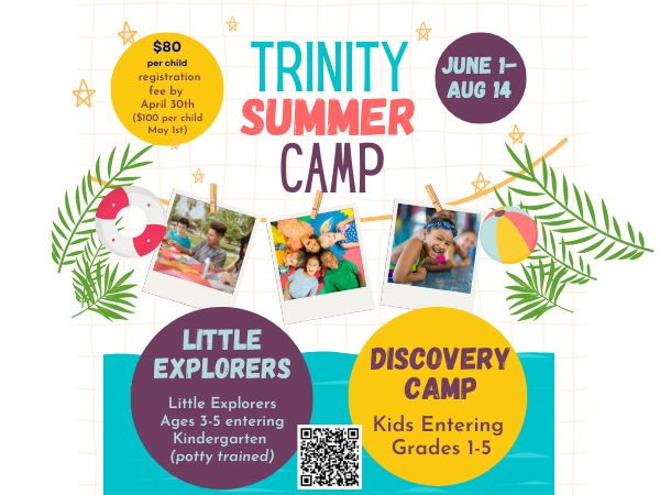 Kids have a blast over the summer at Trinity's Summer Camp! We offer two summer camps: Little Explorers for kids ages 3 years (fully potty-trained) to 5 (entering kindergarten) and Discovery Camp for students entering grades 1 to 5.